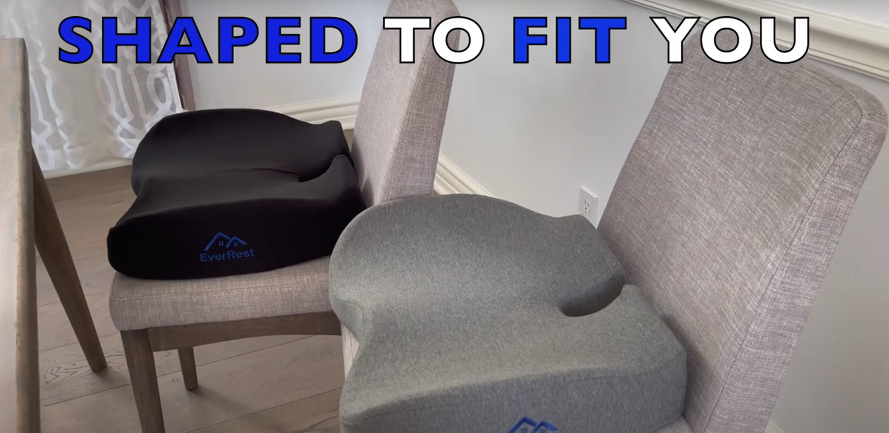 EverRest Seat Cushion for Office Chair - Large Memory Foam Pillow for Tailbone, Coccyx, Sciatica, Back Pain Relief